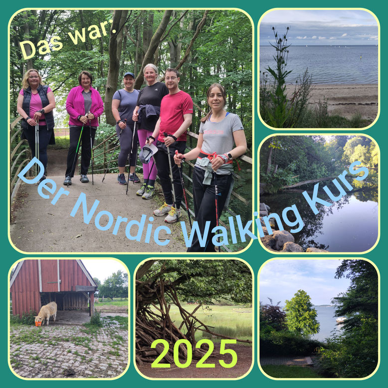 konnte der Kurs in diesem Jahr wie gewohnt im Frühjahr starten. Mit acht Teilnehmerinnen und einem Teilnehmer, die alle sehr motiviert und gut gelaunt waren, habe ich zunächst vier Kurseinheiten auf dem Sportplatz durchgeführt, um die Walkingtechnik zu begutachten und gegebenenfalls zu korrigieren. Die fünf folgenden Einheiten haben wir Kiels Stadtgebiet erkundet. Das Viehburger Gehölz, das Projensdorfer Gehölz, die Schwentine in Wellingdorf, Schulensee und das Domänental haben wir besucht. Bei viel Schnatterei wurde gelegentlich dann die Technik etwas vernachlässigt, aber wozu bin ich denn sonst da, wenn ich nicht was "zu meckern" hätte;) Jedenfalls war die Stimmung im Kurs von Anfang an super gut und es hat viel Spaß gemacht.